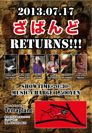 ハイ、知らない人はまったく知らない、知ってる人はかなり大好きなThe Bandのような曲をやる『ざばんど』のLiveでございます♪