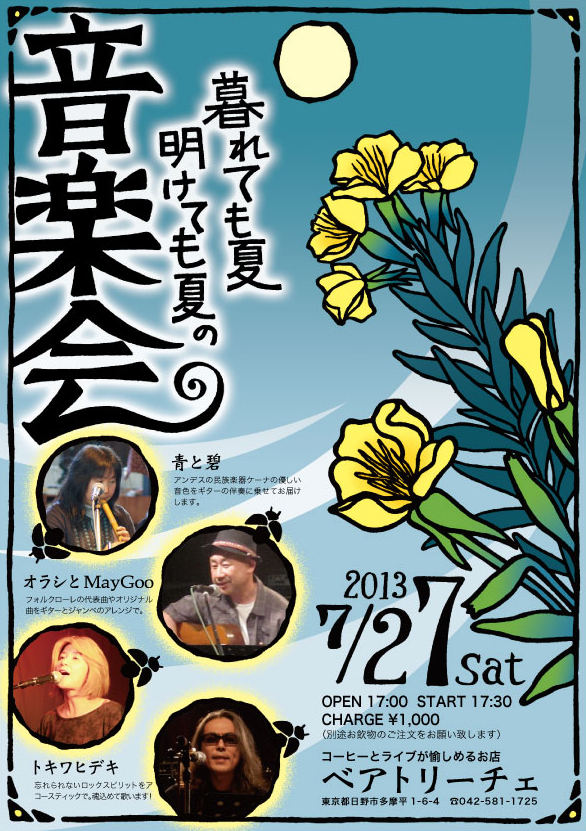ということで、東京都日野市は豊田駅徒歩5分の喫茶店『ベアトリーチェ』でLiveを行います♪